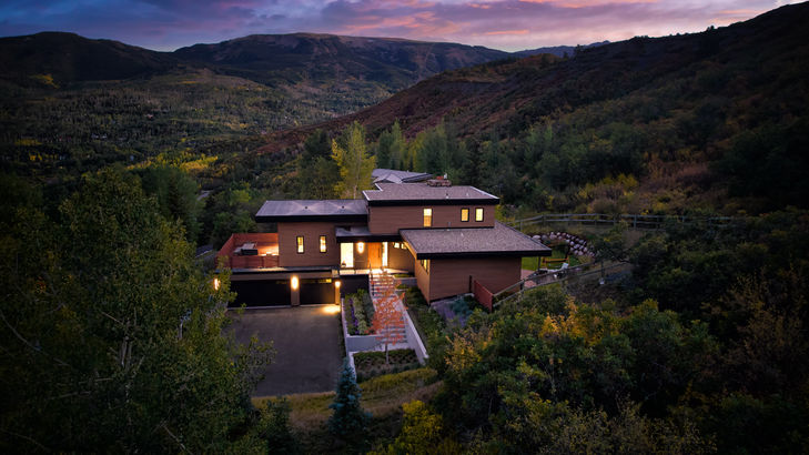 Expansive glass walls open the living spaces to sweeping views of the Roaring Fork Valley, blurring boundaries between interior and exterior. Thoughtful siting and subtle changes in elevation across the structure allow the home to step naturally with the land, reinforcing its connection to the mountainside.