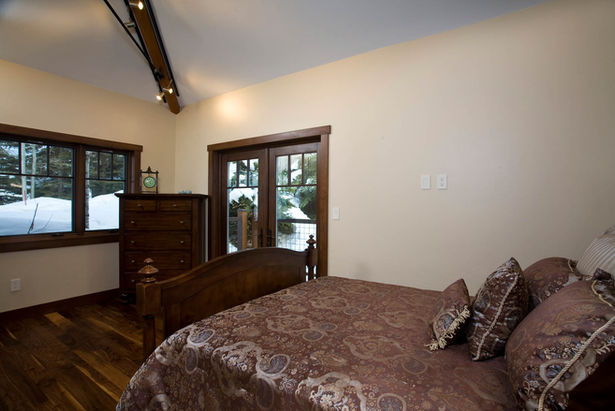 Private spaces were designed for retreat and reflection. The primary suite features its own fireplace and vaulted ceiling, while the bedroom’s windows perfectly frame the alpine sunset. Each space invites a quiet moment with the mountain beyond, making nature a constant and calming presence.