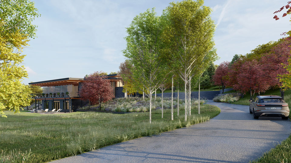 The site plan transforms the surrounding terrain into a living landscape of wellness and connection. Fire pits and expansive lawns create moments of gathering and play, while a dedicated wellness retreat—complete with two hot tubs, a cold plunge, and a sauna—offers restorative balance amid mountain stillness.